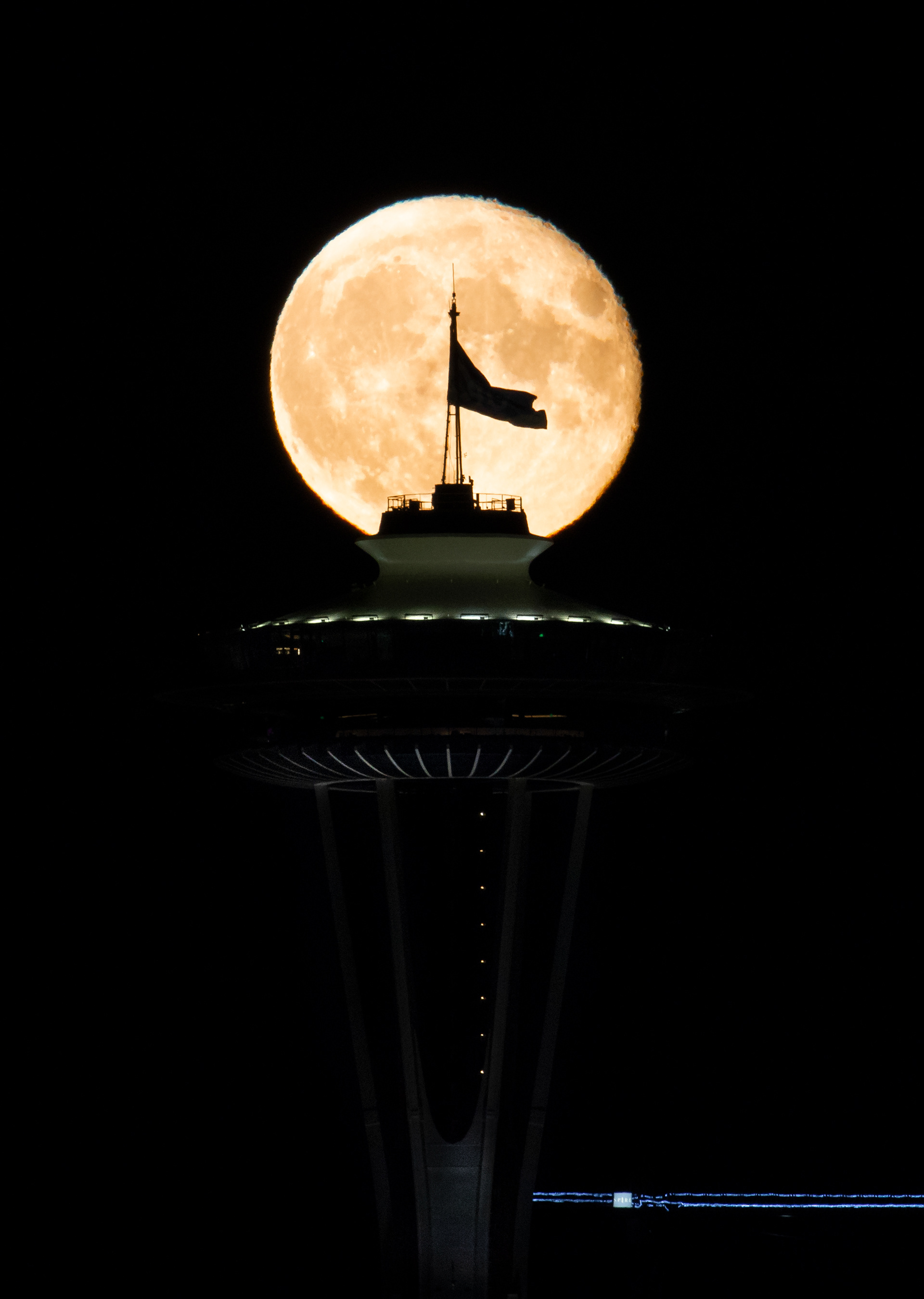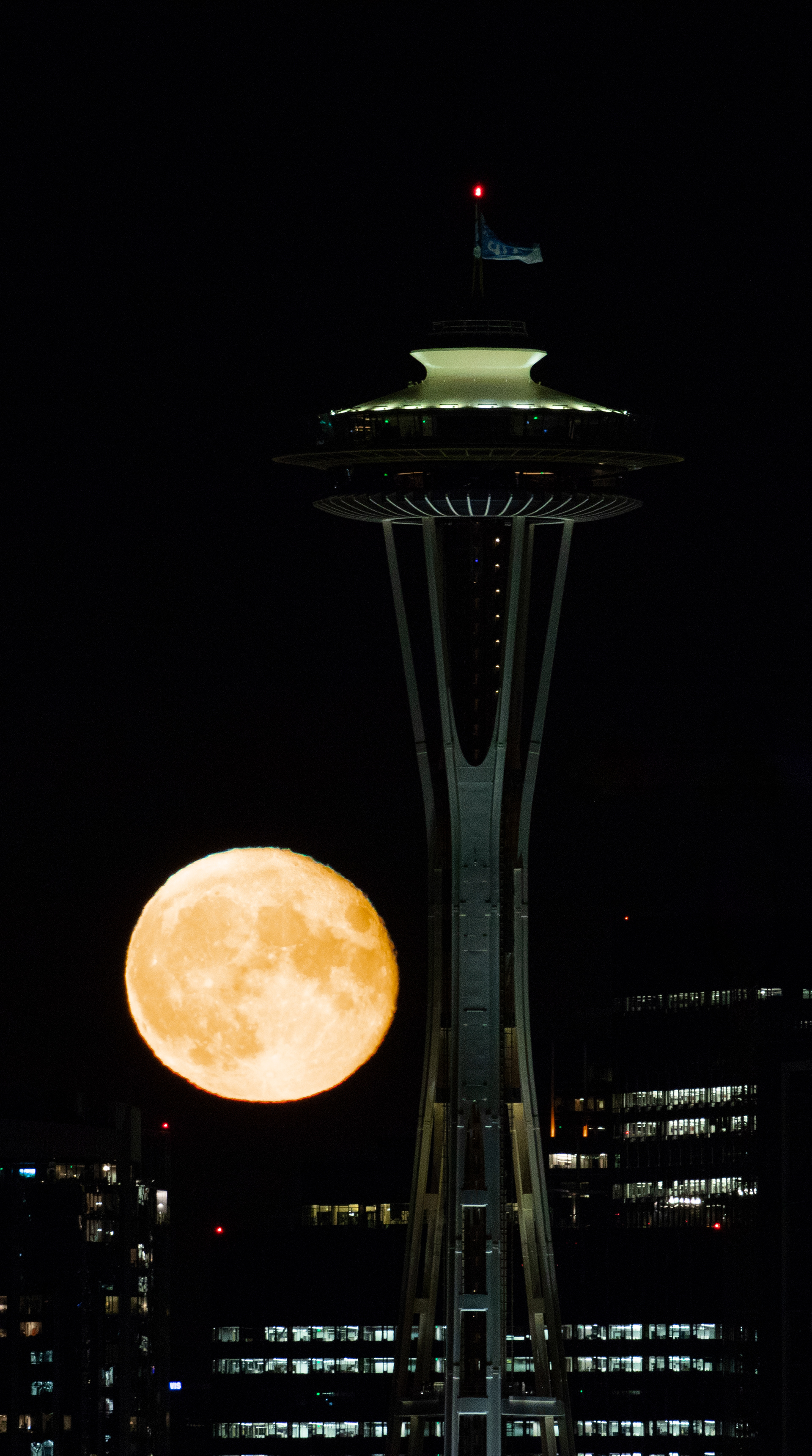 Full Moon rising behind Space Needle - Seattle Washington State - USA